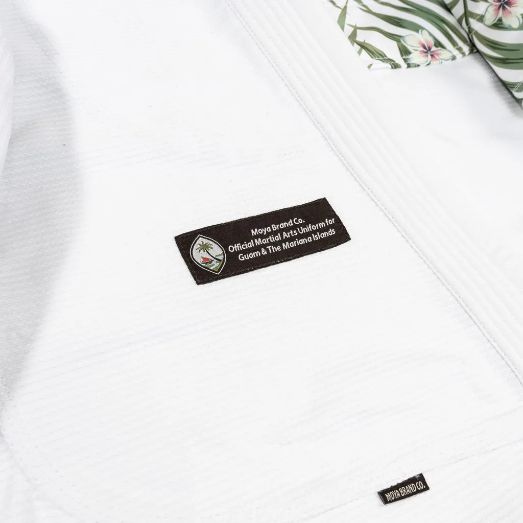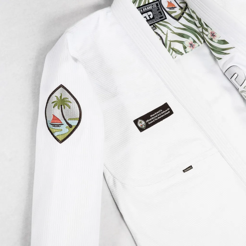 Serie Guam 2025: Combinando bordados directos y parches tejidos, la nueva serie Guam celebra el espíritu único de la isla. El gi luce ilustraciones inspiradas en Guam con olas del océano tropical, siluetas de piedras color café con leche y el icónico emblema de piedra Chamorro, sutilmente incorporado al diseño.